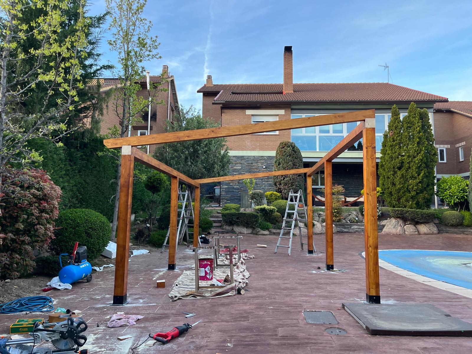 Perfecta para crear un área de sombra y relajación, esta estructura durable y estilosa se adapta a cualquier jardín o patio. Disfrute de cenas al aire libre, lectura bajo la sombra o simplemente relajarse en un entorno acogedor y natural. ¡Añada un toque de encanto y funcionalidad a su hogar con estas impresionante pergola de madera!